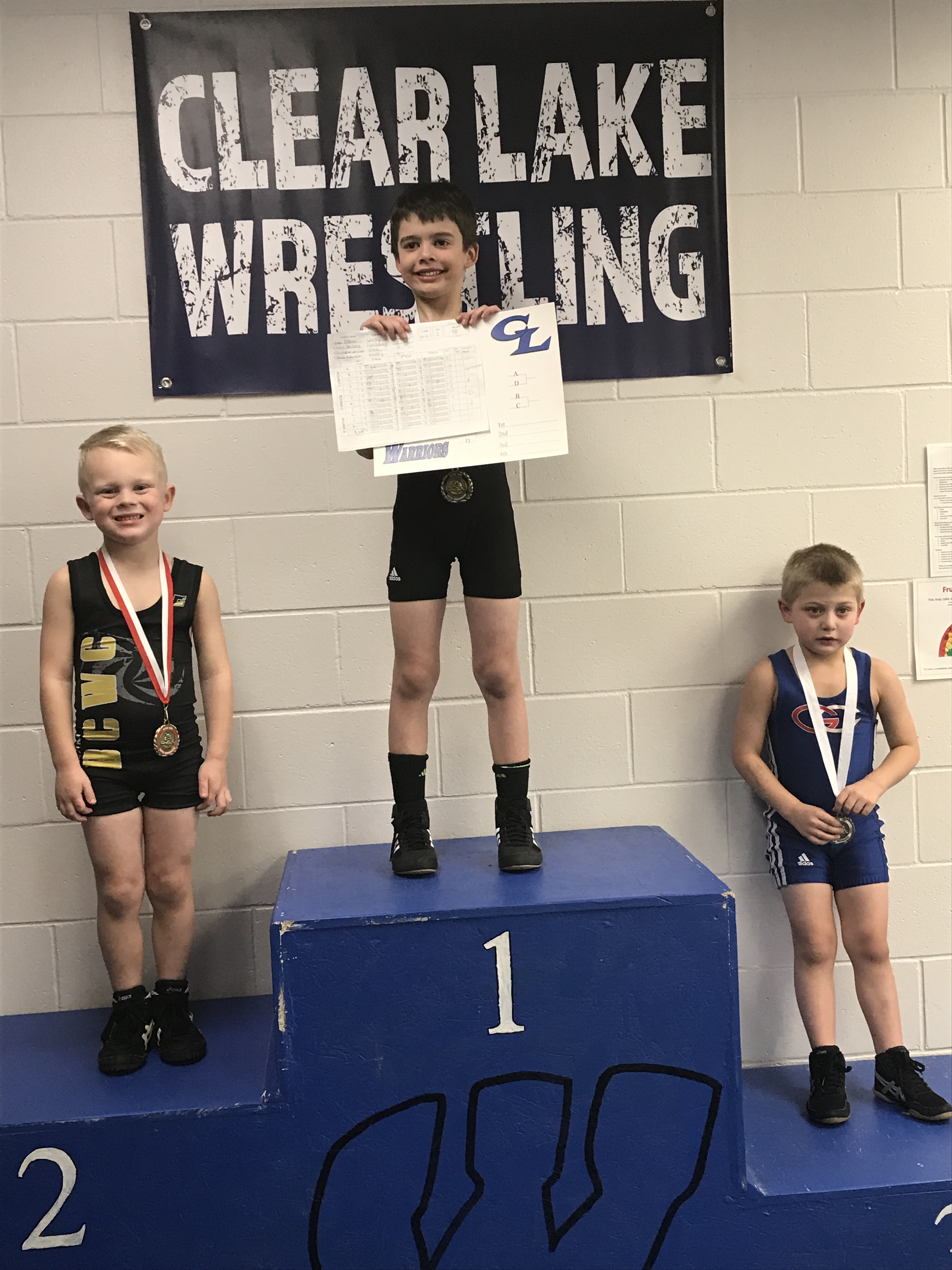 Year 3- kindergarten- 6 years old… Grant can now put a guy in a half-Nelson and pin. He is doing well in practice. The goal this year was simple: no crying! We did the Grantsburg tournament and he was in a bracket of five kids. He got 5th but he NEVER CRIED and wrestled so hard! Grant is 49/50 lbs. which has him wrestling bigger kids than him so that was hard there but he was tough and was excited! Nick took Grant and Abe to Clear Lake where Grant got second! He lost his first match to a much bigger kid. He won the second one and the last kid forfeited. Grant was pretty proud as he thought his toughness probably scared the kid! Ha!