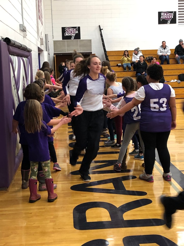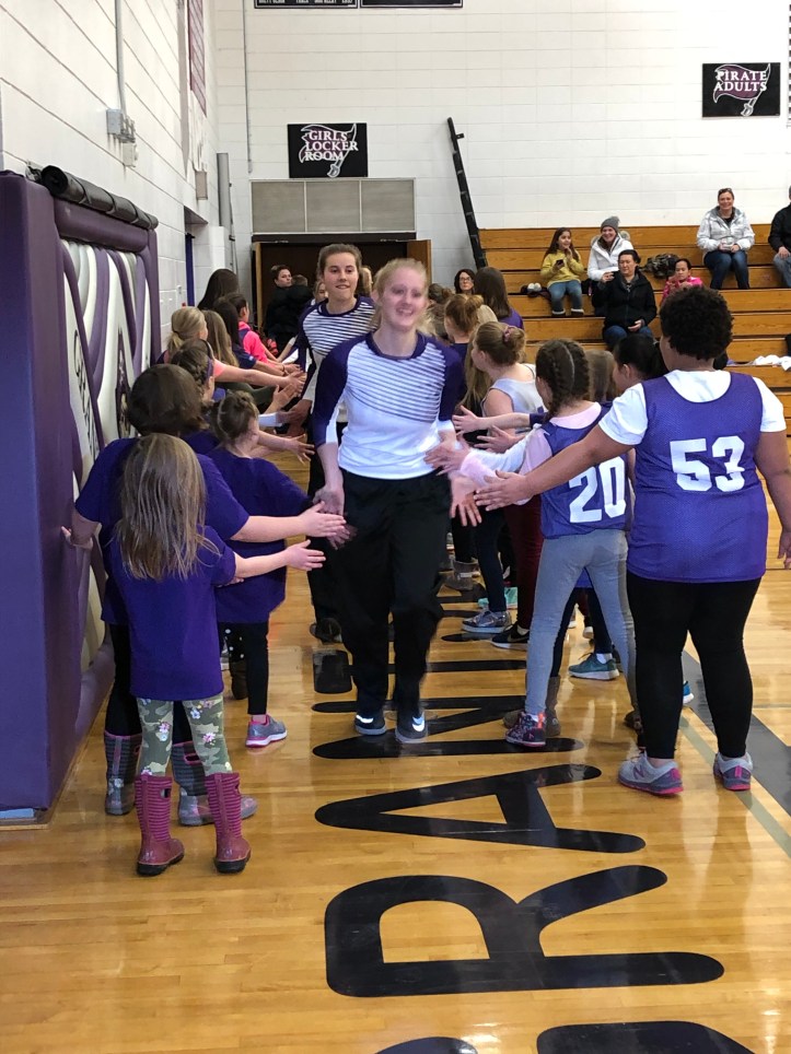 For the last varsity girls’ basketball game the little girls that play basketball in 1st through 5th grade got together to wish them well as they entered the court on Friday. They were ridiculously cute!